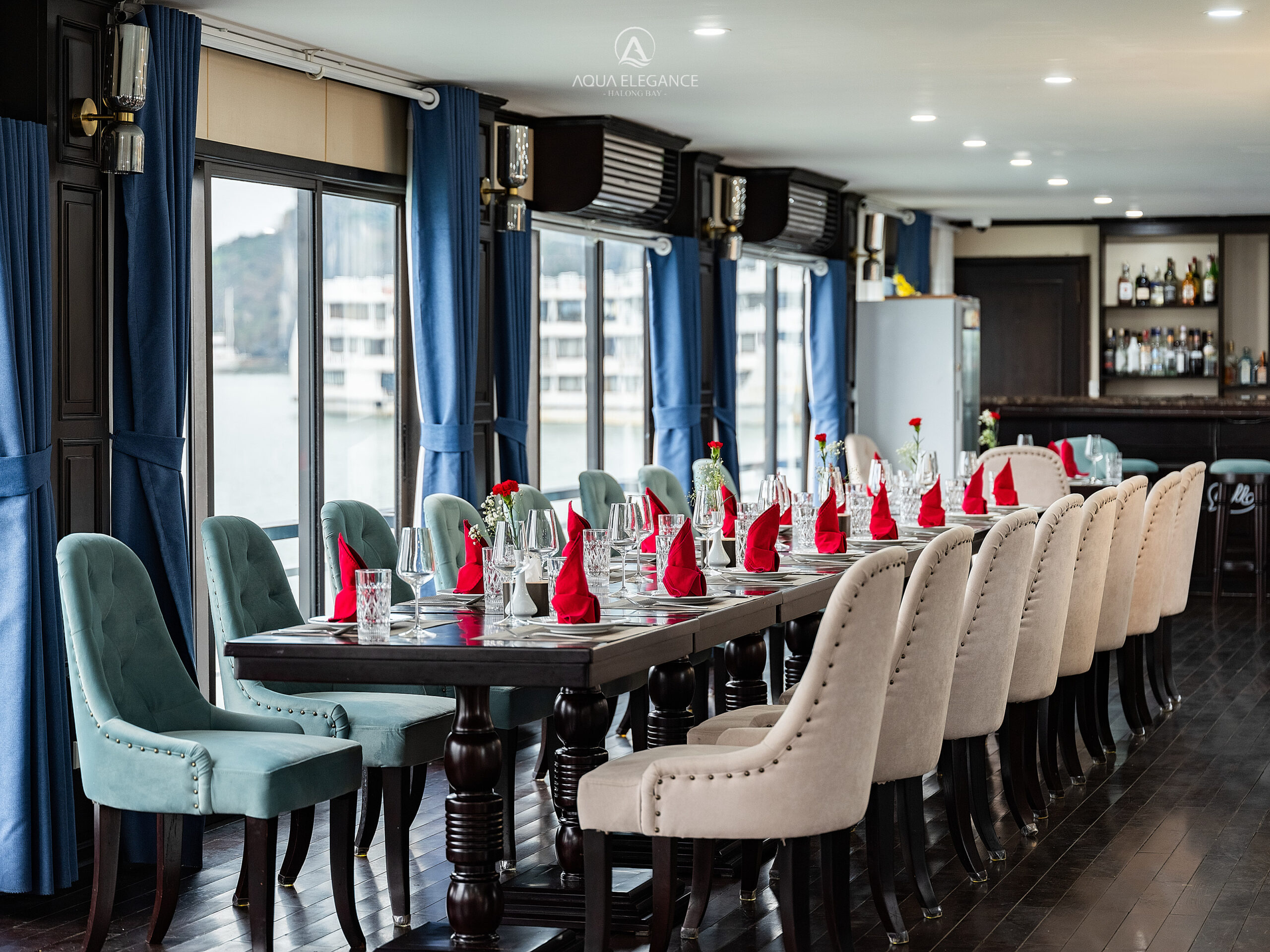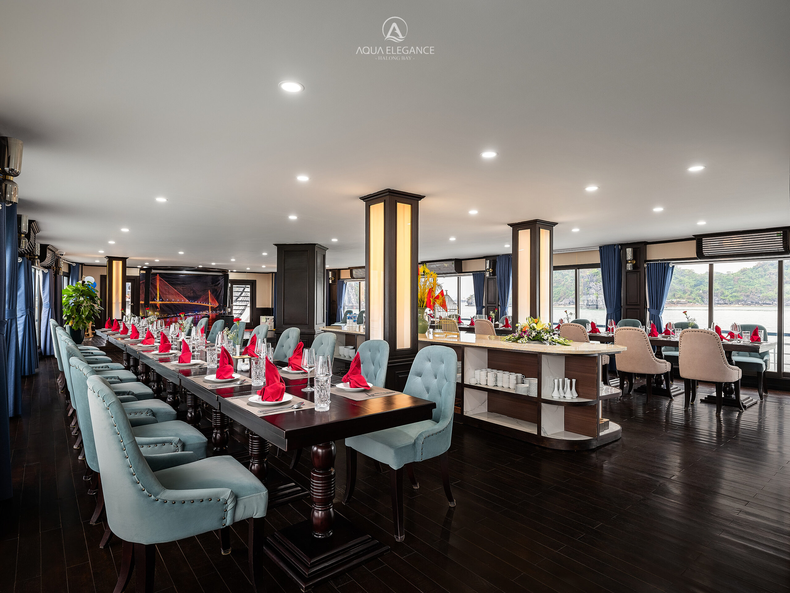 Aqua Elegance brings guests a refined Halong Bay experience with excellent service, elegant design, and immersive excursions to iconic sites such as Surprise Cave, Titov Island, and Luon Cave.