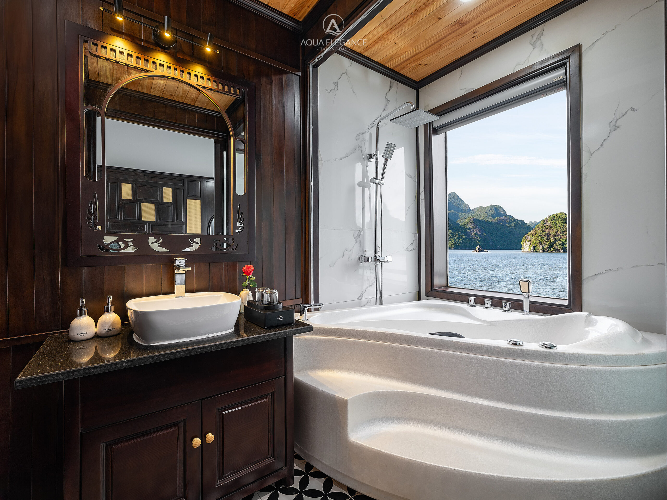 Launched in August 2024, Aqua Elegance is a brand-new 5-star cruise in Halong Bay. With only 21 luxury cabins — each featuring seaview windows and bathtub — the cruise is designed for ultimate privacy and comfort. Facilities include restaurant & bar, sundeck, spa, and leisure activities such as kayaking, swimming, squid fishing, and cooking classes.