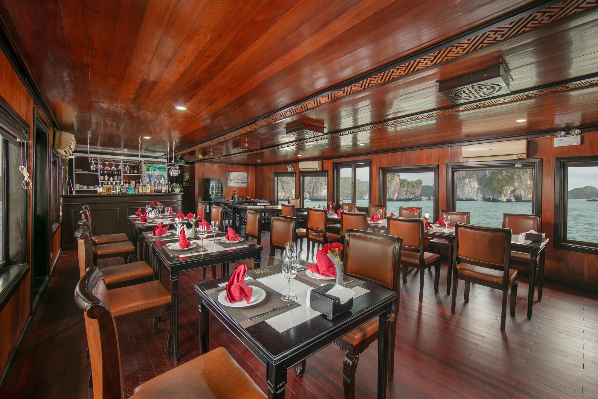 Ruby Cruise is a cozy boutique 3.5★ wooden boat with just 12 cabins, perfect for travelers seeking a budget-friendly Halong Bay experience with attentive service. The 3D2N itinerary allows more time to explore UNESCO World Heritage Halong Bay: kayaking at Luon Cave, swimming at Titop Island, visiting Sung Sot Cave, Trinh Nu Cave, and Ba Trai Dao Beach in Lan Ha Bay. Guests also enjoy authentic local cuisine, sunset tea, and fun onboard activities like squid fishing and spring roll making.